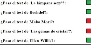 El test de Bechdel vuelve a pasarlo raspado a pesar de casi duplicar la presencia femenina en la novela con respecto a la primera parte de la saga. Salvo por un personaje concreto, todo los demás poseen un nombre y al menos una frase de más de siete palabras. La que no posee nombre es porque no lo necesita, pues es de esos personajes NPC que sólo están ahí para cumplir una función, como un tendero o un posadero. Pero la conversación que pasa el test de Bechdel es la siguiente entre Devi y Fela (sin acotaciones):
