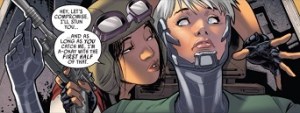 Al final del primer arco argumental de Doctora Aphra se nos menciona que le ha gustado una oficial imperial, Magna Tolvan, y su padre le dice que tiene un gusto pésimo para las mujeres. Como cabe esperar, su encuentro con Tolvan no será el último y gracias a ellos tenemos un romance… peculiar. Aquí Star Wars se atreve a hacer lo que sólo ha hecho en las novelas: una relación romántica entre dos personas del mismo sexo. Lo bueno del cómic es que nos deja con varias escenas explícitas de besos y tonteo entre ellas dos. Todo tratado siempre con naturalidad.