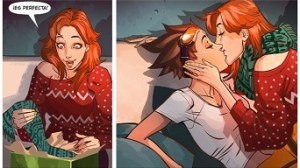 Su inclusión en esta lista está un poco metida con calzador, no lo negaré, pero sentía que debía de incluirlo. En las Navidades de 2016 confirmaron, tras un tiempo de queer baiting, cuál de sus personajes era gay y resultó ser Lena Oxton aka Tracer, su imagen en prácticamente todos sus productos. La revelación se hizo con mucho mimo a través del cómic Reflejos que ocurre durante Noche Buena y en el que Tracer (que pueda moverse al margen del tiempo) se ha pillado a la hora de comprar un regalo para su pareja: Emily. Tras esto, vemos la cena de Noche Buena con su gran amigo Winston en una estampa de lo más acogedora.